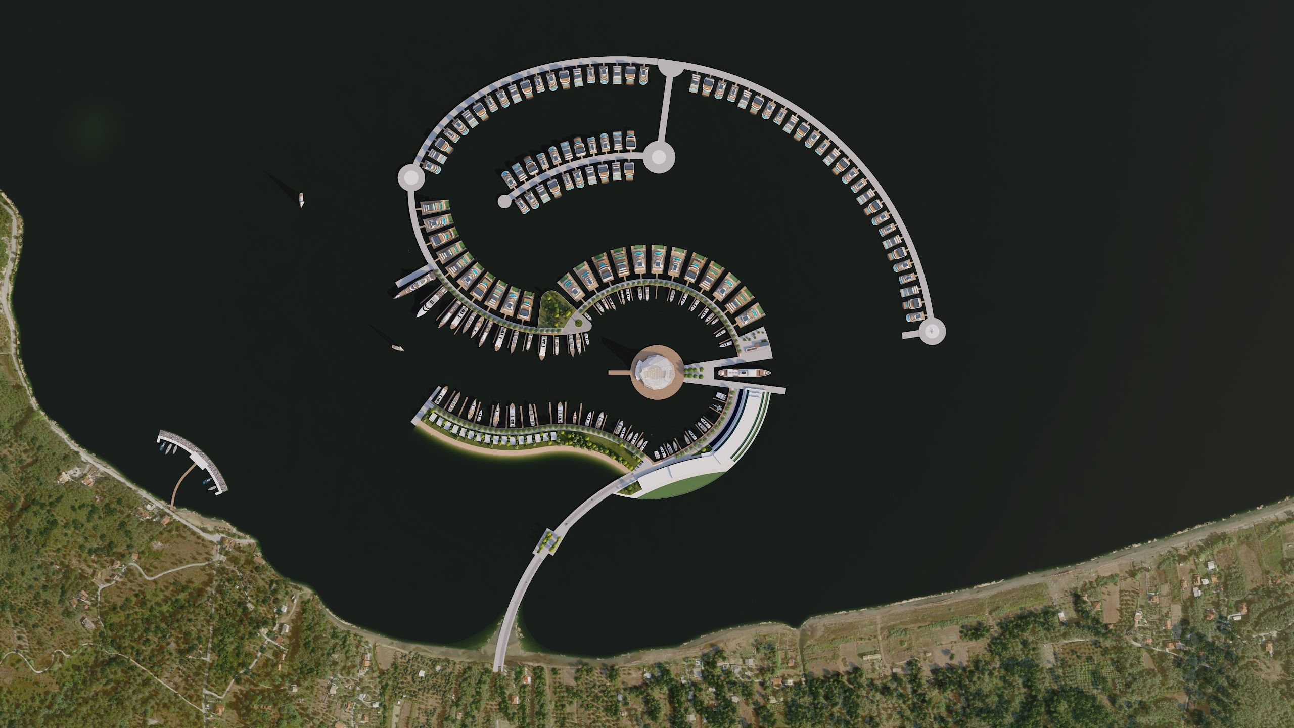 The project's concept revolves around constructing a self-contained floating island that includes high-end residential units, a state-of-the-art marina capable of accommodating mega yachts, luxury villas with private berths, a five-star hotel, and extensive recreational facilities.